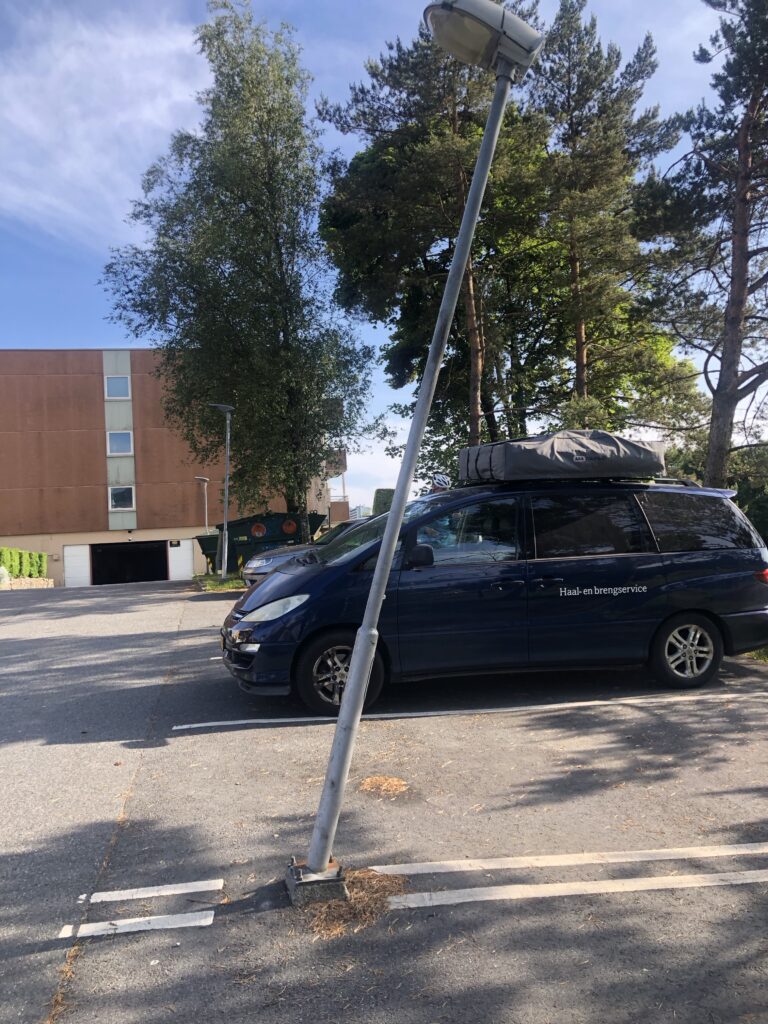 Om 17 uur waren we bij de air B and B. Helaas stond er ineens een paal achter de auto. Nou ja, achter, bijna erin. Gelukkig ving de fietsendrager de klap op. Die fietsendrager heeft al heet wat te verduren gehad. Vorig jaar zat hij nog vast in een rotsblok. De paal wordt gerepareerd uit ons teveel betaalde tolgeld😮😉.