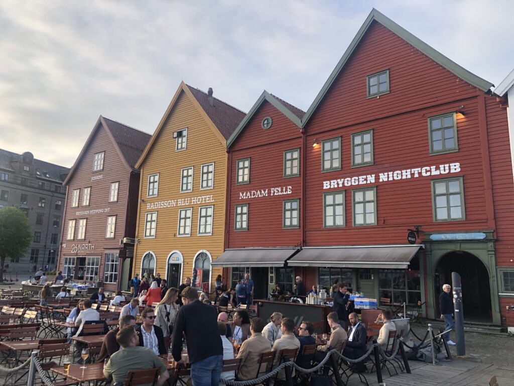 Heerlijk gegeten bij Bjerk. Daarna geslenterd door de wijk Bryggen. Het UNESCO-werelderfgoed Bryggen, “De Hanzekade”, is het overblijfsel uit de tijd dat Bergen het handelscentrum was tussen Noorwegen en de rest van Europa.