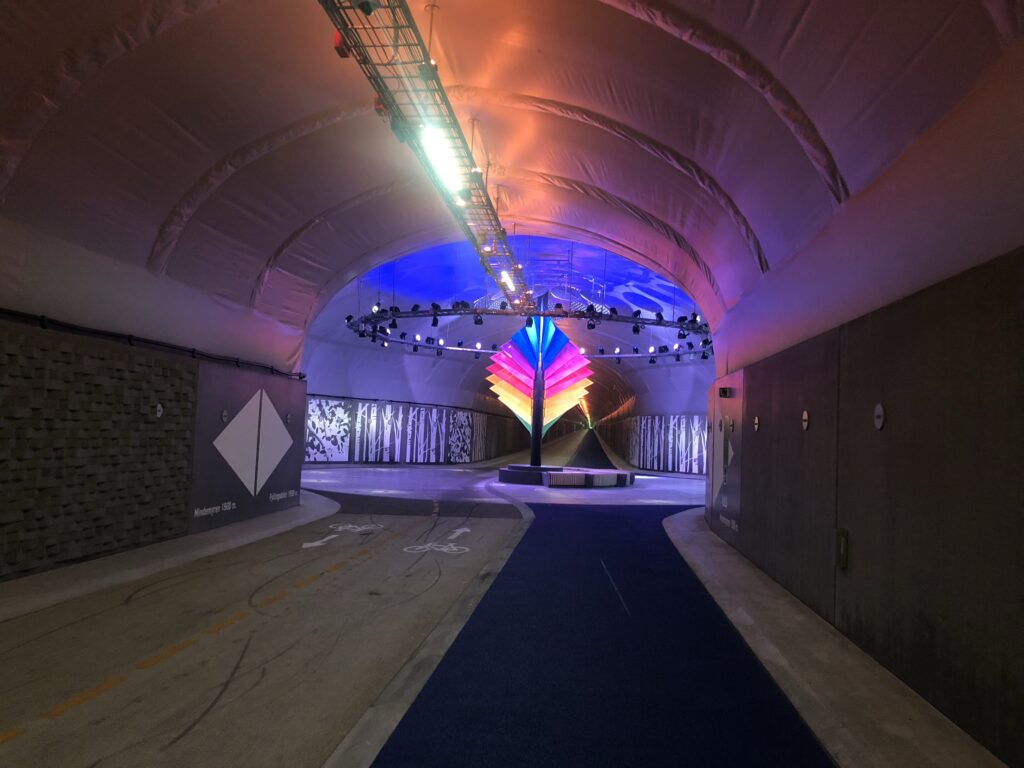 Vivian, onze hostess, verhuurt een kamer in haar appartement. We kregen een lekkere bak koffie en uitleg hoe in de stad te komen. Er is pas een fiets/wandeltunnel aangelegd van 3 km naar de stad. Dus geen heuvels, geen verkeer en geen last van wind of regen, ideaal. 15 april was hij geopend. Hij is voorzien van lampen in alle kleuren van de regenboog, dus absoluut niet saai. Na de tunnel nog 4 km fietsen en we stonden midden in het centrum.