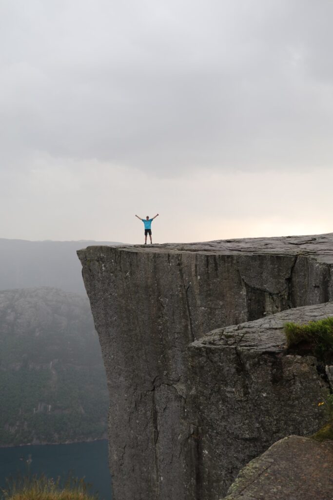 Tja ieder nadeel heeft zijn voordeel. Slecht weer, lekker rustig. Ik hoop dat jullie nog wel een beetje uitzicht hebben gehad op de Preikestolen door t weer. Veel plezier verder.