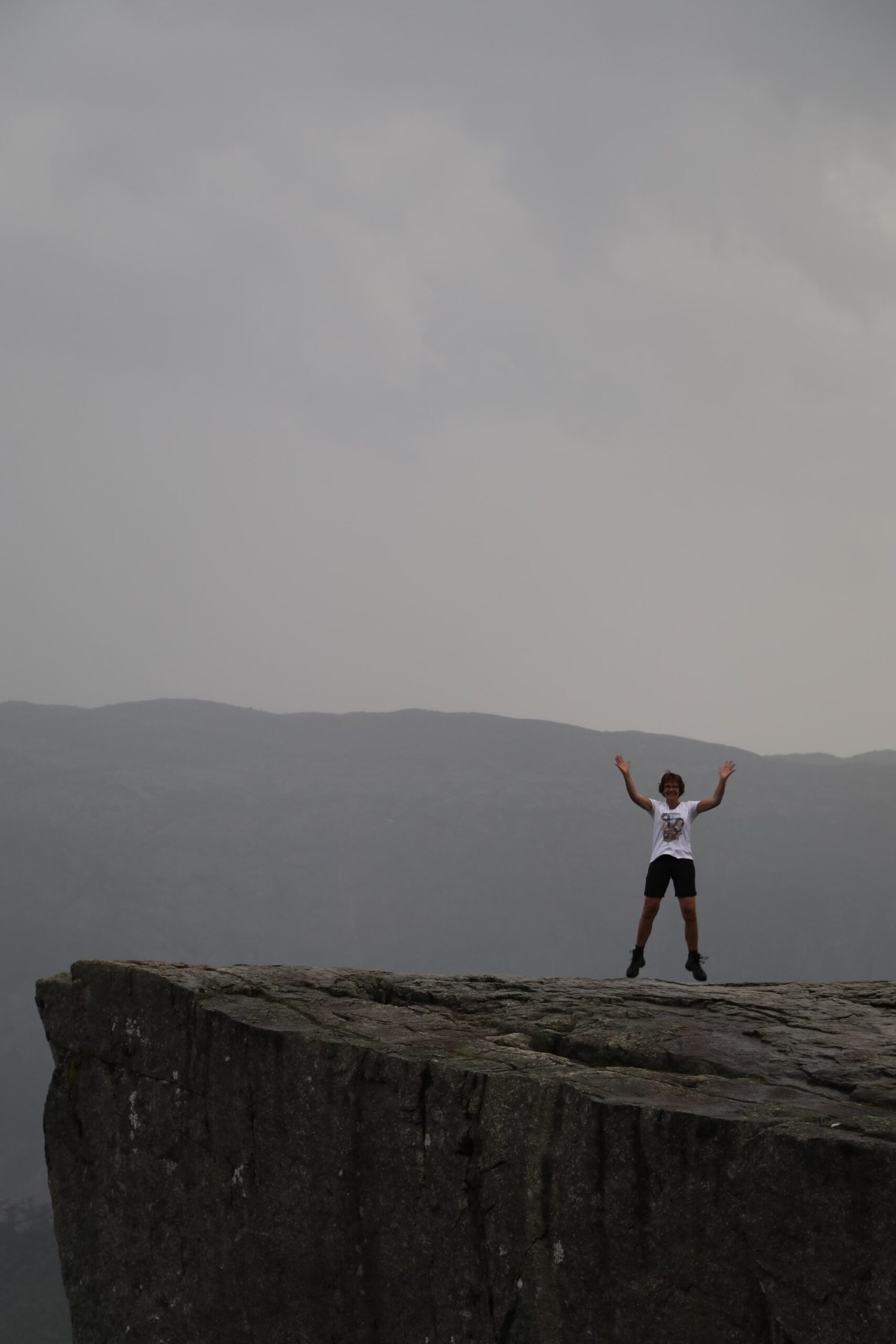 Tja ieder nadeel heeft zijn voordeel. Slecht weer, lekker rustig. Ik hoop dat jullie nog wel een beetje uitzicht hebben gehad op de Preikestolen door t weer. Veel plezier verder.